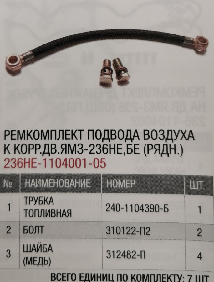Р/К подвода воздуха к корр. дв. ЯМЗ-236НЕ,БЕ (рядн.) 236НЕ-1104001-05