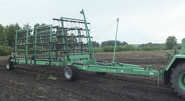 Борона легко перестраивается из рабочего в транспортное положение и обратно.