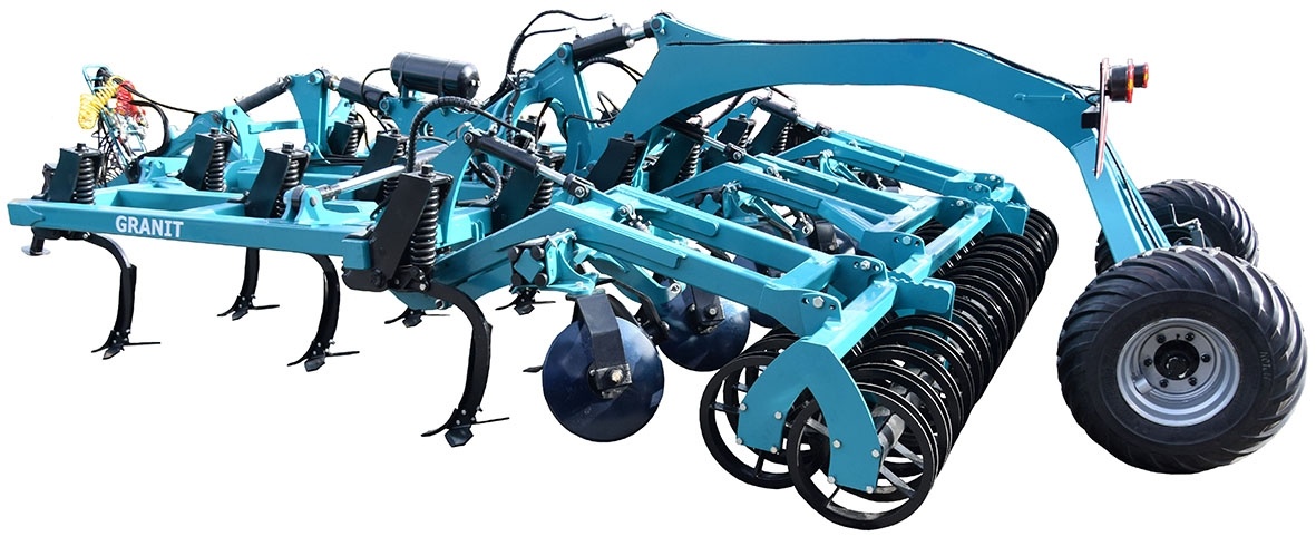 Культиватор стерневой тяжелый мульчирующий "Гранит" с комплектом лап "MulchMix" позволяет с одного прохода произвести почвообработку на глубину до 35 см совместно с заделкой и прикатыванием.